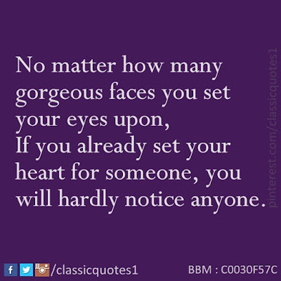 No matter how many gorgeous faces you set your eyes upon, if you already set your heart for someone, you will hardly notice anyone.